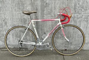 Super! Another Colnago Super. At the risk of boring you, our wonderful museum visitor, I must expound once again on the virtues of the Colnago Super. It was, after all, a bike that served the great Eddy Merckx. If Eddy’s wins weren’t impressive enough, my friend Tom had one, and I thought he was pretty fast too. The Super was a bike model that was crafted so perfectly from the outset that it served as standard bearer for racing bike construction from 1970 to almost 1995.