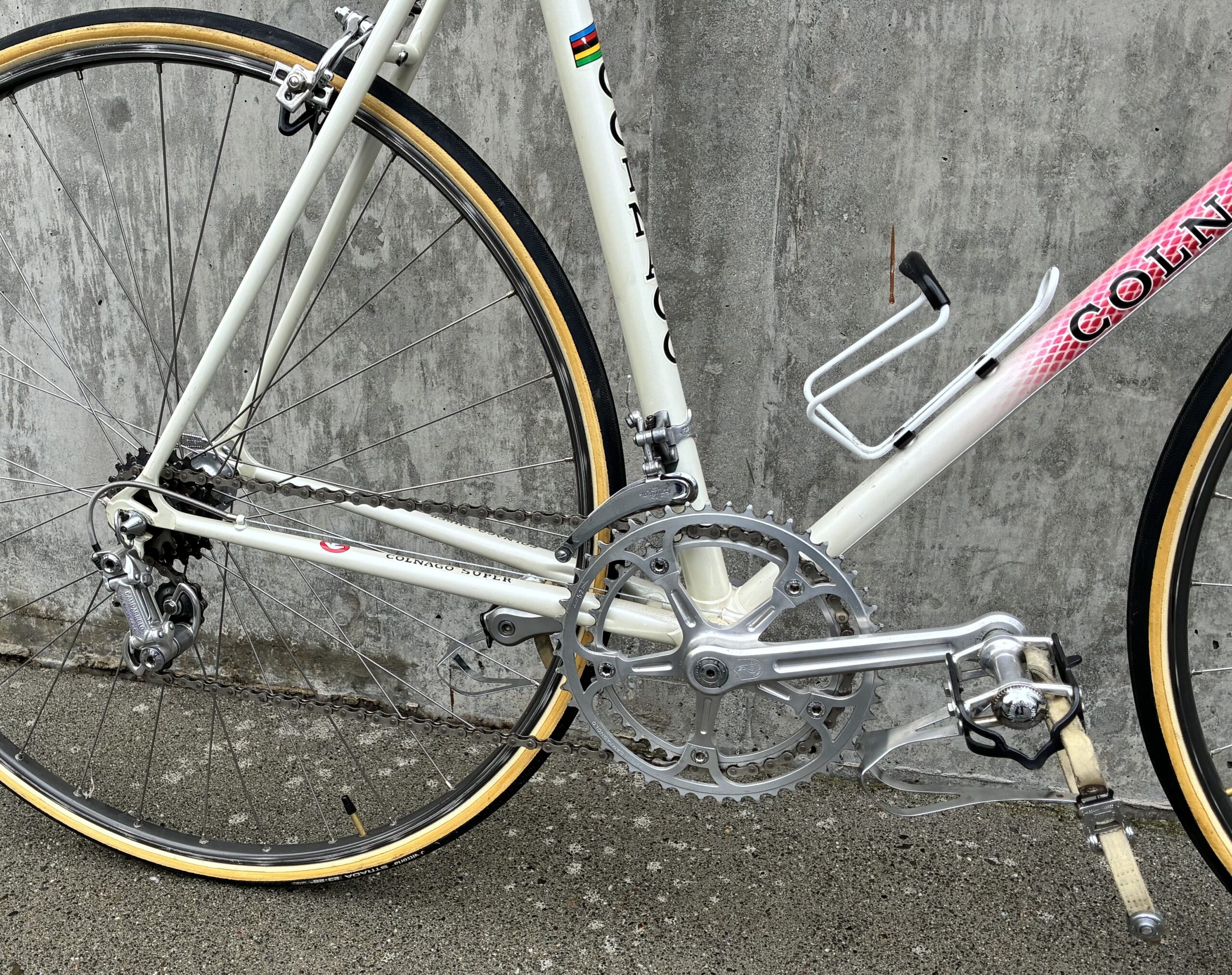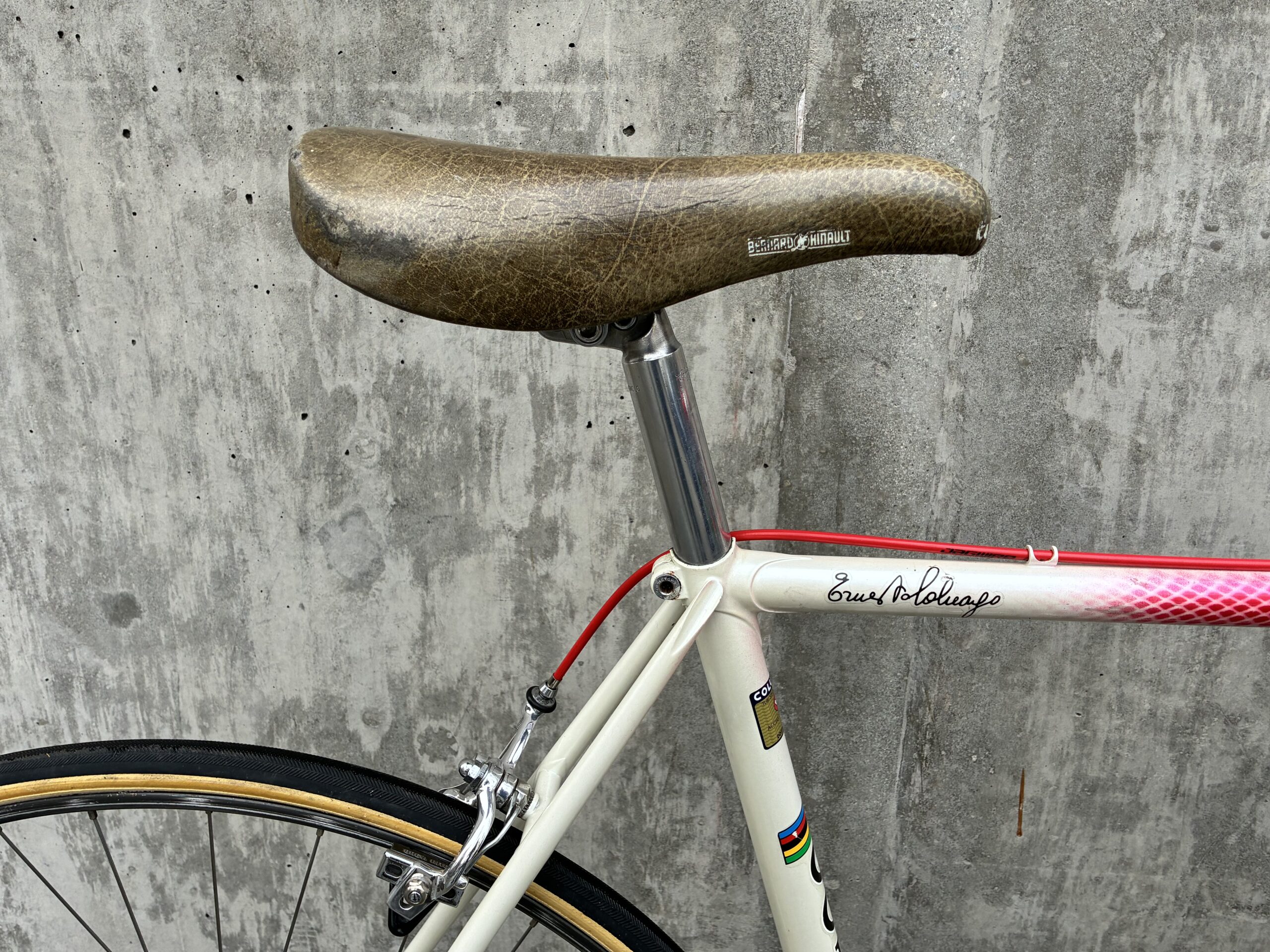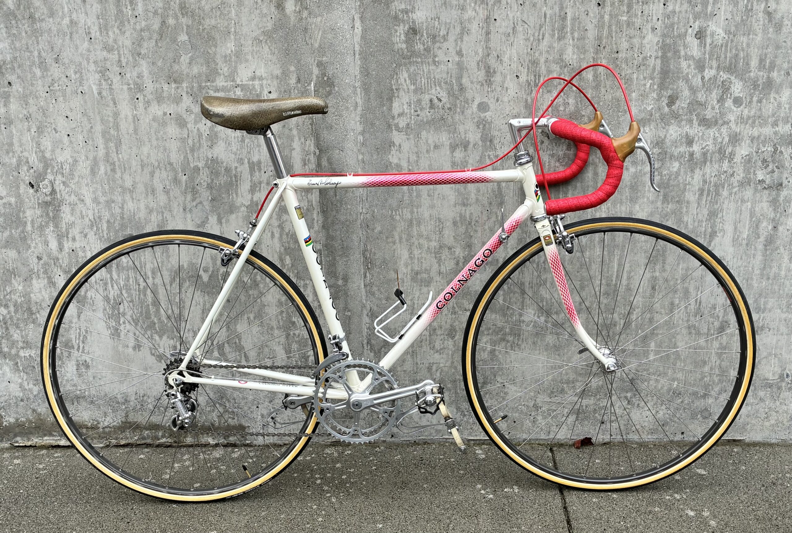 The ingredients were good. Like a lot of builders, Colnago made these bikes out of Columbus SL steel tubes. The components varied, but Campagnolo Nuovo Record and later Campy Super Record parts were probably fitted to 95 percent of these bikes with Cinelli or 3T handlebars, Cinelli or Selle Italia saddles, and it was always sew-up tubular tires glued onto the wheels.