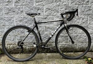 This is a Trek “cyclocross” bike from ten years ago. At the time we didn’t think it would be a big seller because it came with wide-clearance cantilever brakes, really wide tires (for cyclocross), and frame geometry that was closer to a road bike than something designed for racing off-road. All of the design elements embodied in a good “Gravel” bike today.