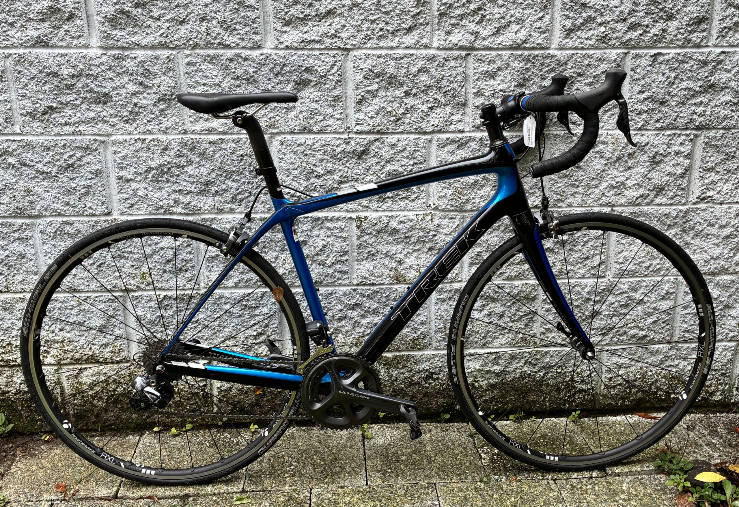 This is a lightly used Domane 6.5 (54cm size) with Ultegra Di2 electronic shifting that was just traded in for an electric bike. It was made in Trek’s Wisconsin factory of pretty high-end carbon. The wheels are Bontrager RXLs with DT Swiss hubs.