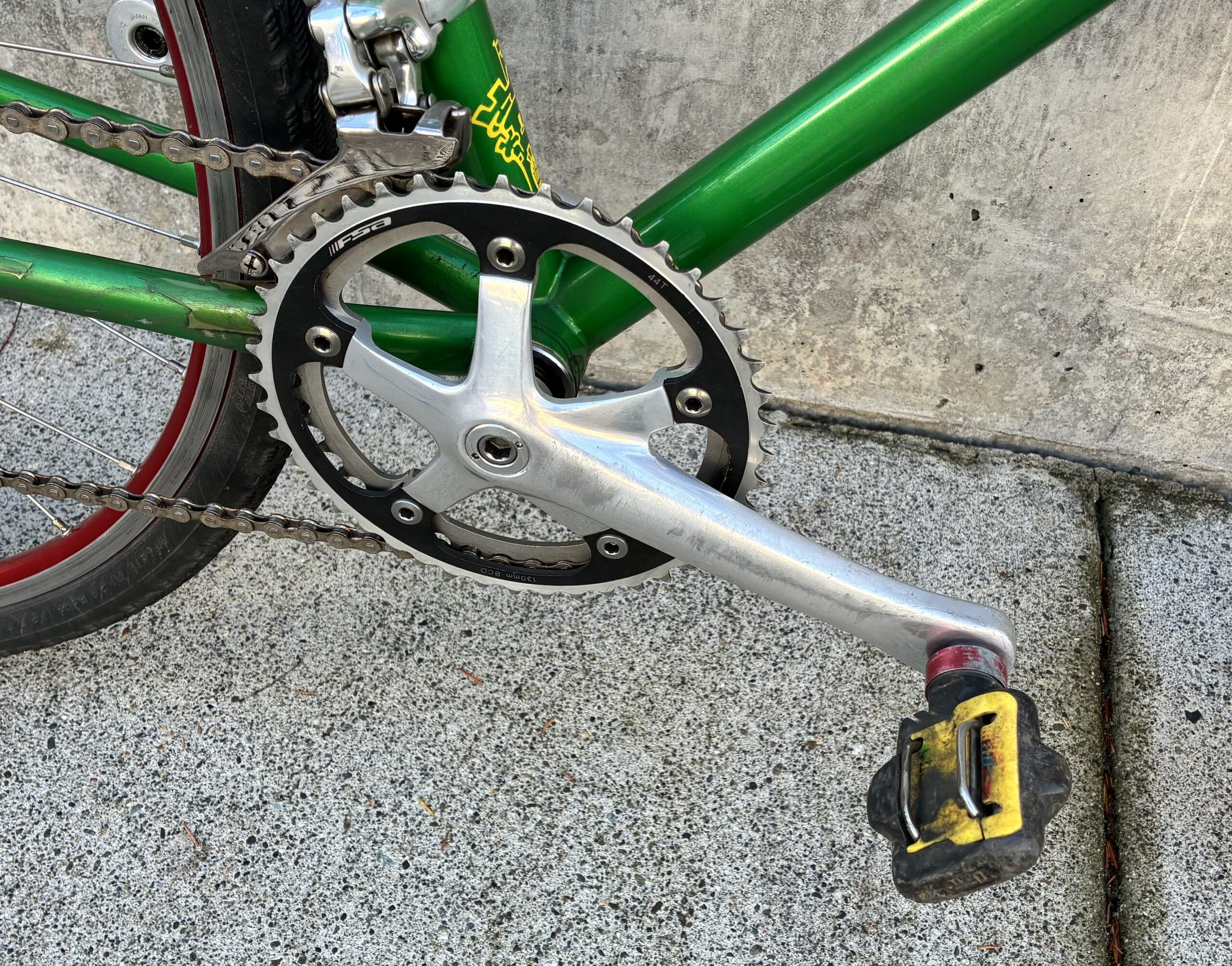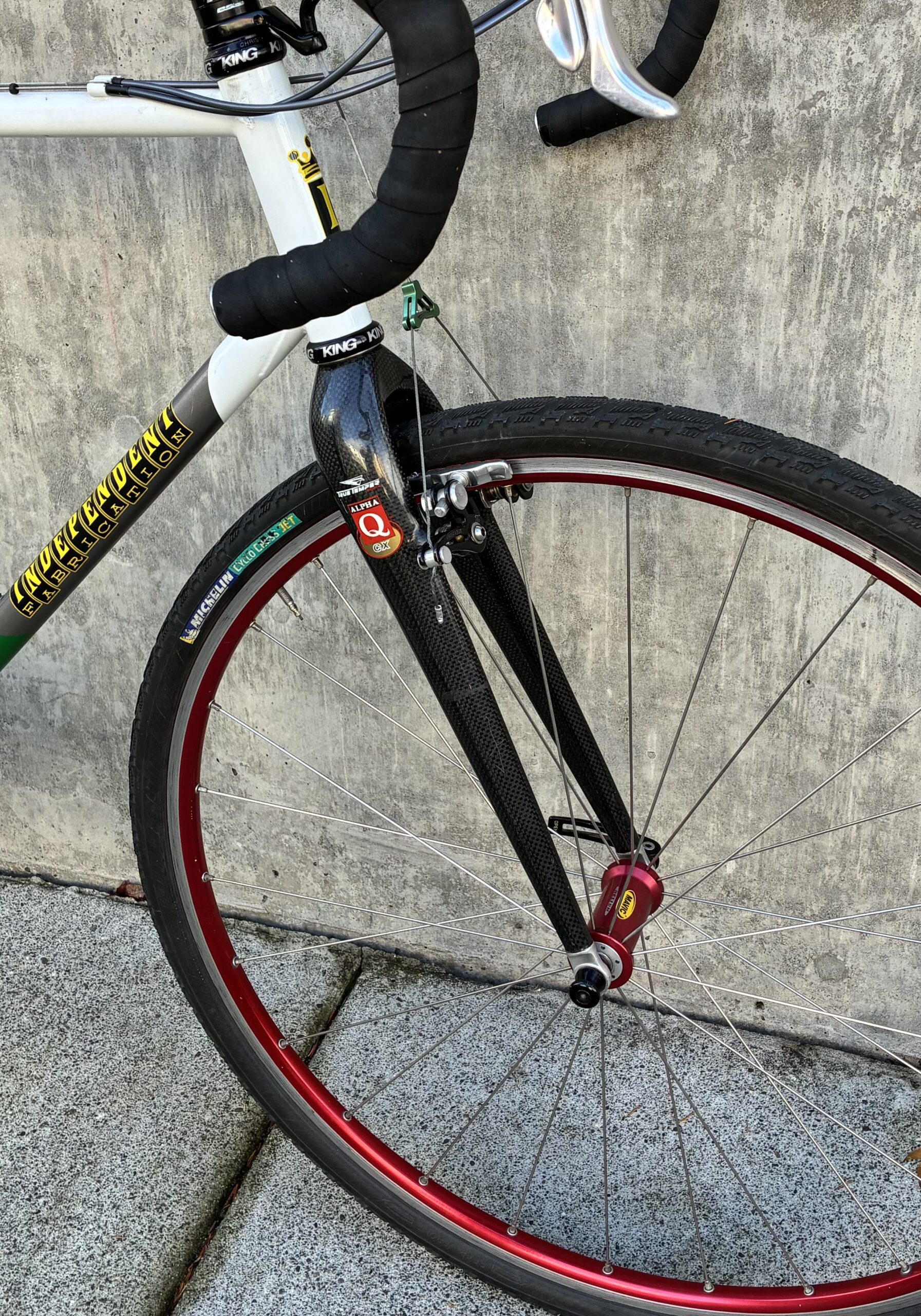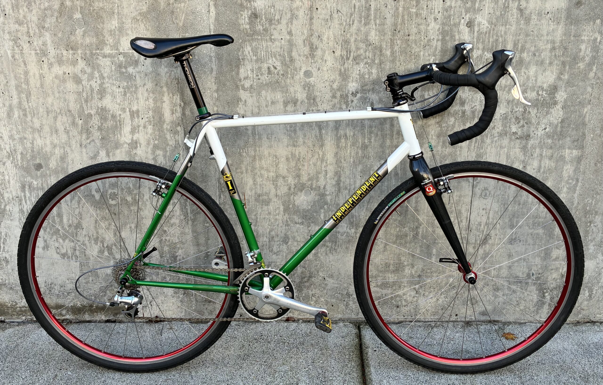 This was a great cyclocross rig, a “Planet X” model built by Independent Fabrications in the early 00’s and painted in their own racing team colors.