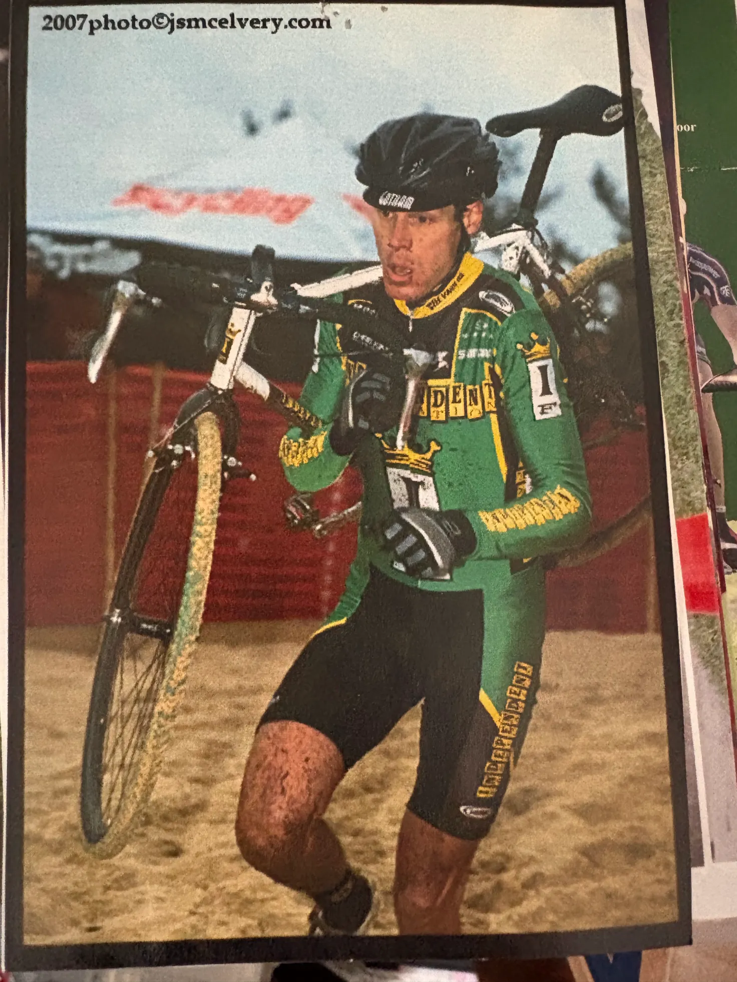Well, using Chris as the template, it means being meticulous and methodical. It means always marking your seatpost height with a piece of tape. It means not wasting anything. It means not having an extra gram of fat on your body or your bike. It means always keeping your bike immaculately clean–not because you’re showing it off, but because you run your equipment until it wears out and you want to get every last kilometer out of it. It means always being up for a ride, and it means never being late for the rollout. It means never bragging, complaining, or making excuses. It means stockpiling all of your vacation days at work so you can use them to travel to races during cyclocross season. It means having nobody at home who depends on you except for the cat. It means asking the doctor, “How soon can I ride the trainer?” It means being so determinedly self-sufficient that when your handlebar completely snaps on a solo ride not too far from your friend’s home, you don’t even call him for a lift; instead, you somehow fix it with a stick and ride the remaining 20 miles home.