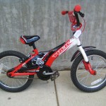 Bikes with 12” wheels are for the littlest kids, usually 3 year olds. Bikes with 16” wheels work for the 4 to 5 year age range, 20” bikes for 5 to 7 year olds, and 24” wheeled biked take 7 or 8 year old kids all the way to 12 years (usually around 4’10” in height, at which point they graduate to adult bikes that are measured by frame size, not wheel size.